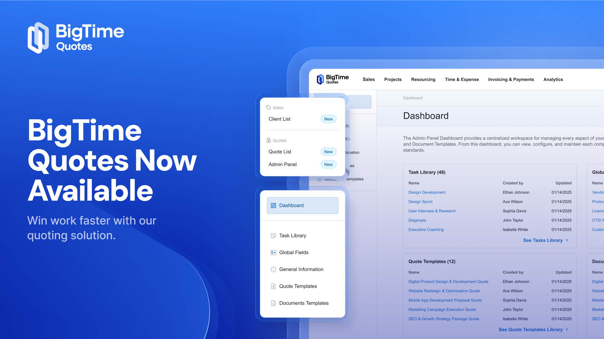 Streamlined Quote Builder: Use the guided Quote Builder Wizard to pull your firm's data, templates, and language, so every proposal is fast, consistent, and on-brand,